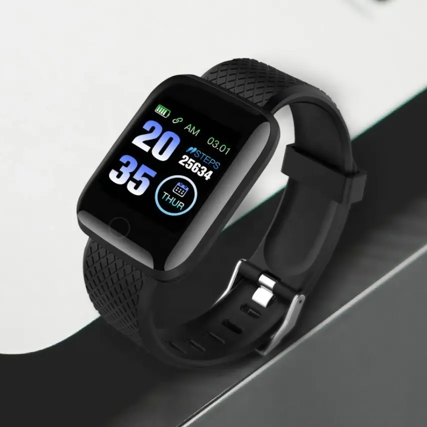 Bracelet connecté 116 Plus, montre connectée étanche avec podomètre, modes multisports, notifications, moniteur de fréquence cardiaque et de pression artérielle.